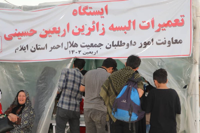کوک عشق بر لباس زائرین کربلا/نساجی هلال ایستگاه تعمیرات البسه زائرین در مهران برپا کرد